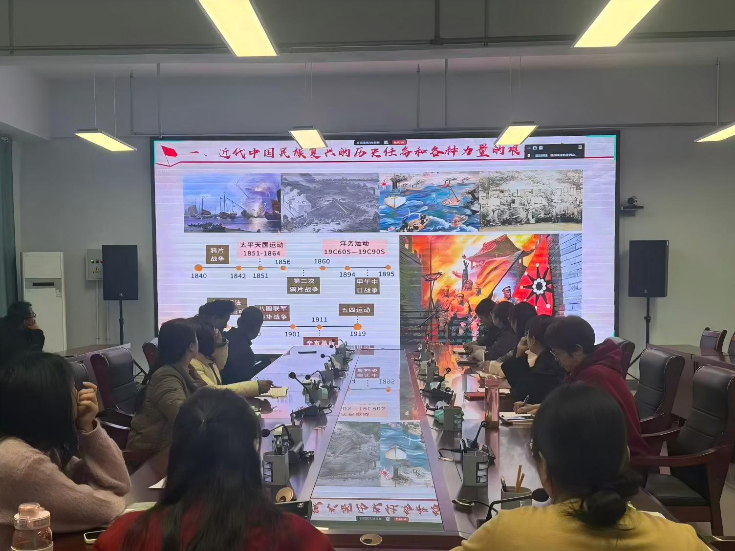 本次专题学习打破传统单一讲授模式,三位青年教师围绕《中国共产党简史》前两个章节,从不同视角搭建学习框架。第一位教师以“时间脉络”为轴,系统梳理了从鸦片战争后中国社会性质转变,到中国共产党成立的关键历史节点,用清晰的时间线串联起重大事件与历史背景,建立宏观历史认知;第二位教师聚焦“读原著、学原文”,精选《中国共产党简史》中关于马克思主义在中国传播、五四运动与工人运动兴起的重点段落,通过逐句解读与理论阐释,精准把握原文内涵,深化对党的思想源头与理论根基的理解;第三位教师则以“党史故事”为切入点,生动讲述了方志敏等革命先辈探索救国道路,以及各地共产主义小组组建过程中的感人故事,用鲜活的人物与细节让历史“活”起来,激发情感共鸣。