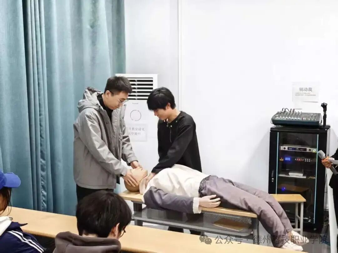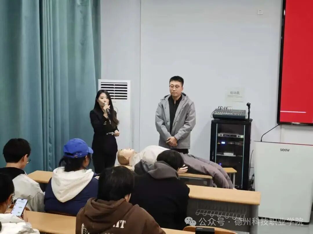 王卓同学强调了急救知识普及的重要性,认为这是赋予每个人“站出来”的底气。王经理则从管理者与长者的角度,提醒同学们见义勇为需与见义“智”为相结合。随后,现场的心肺复苏演示与实操体验,将抽象的认知转化为具体技能,让“勇敢”落地为“能力”。