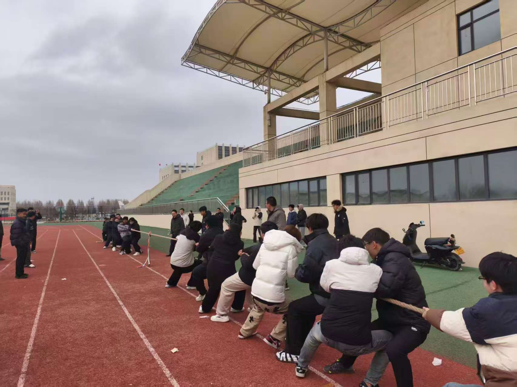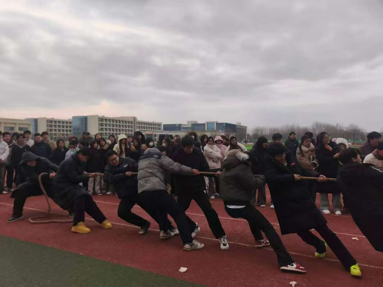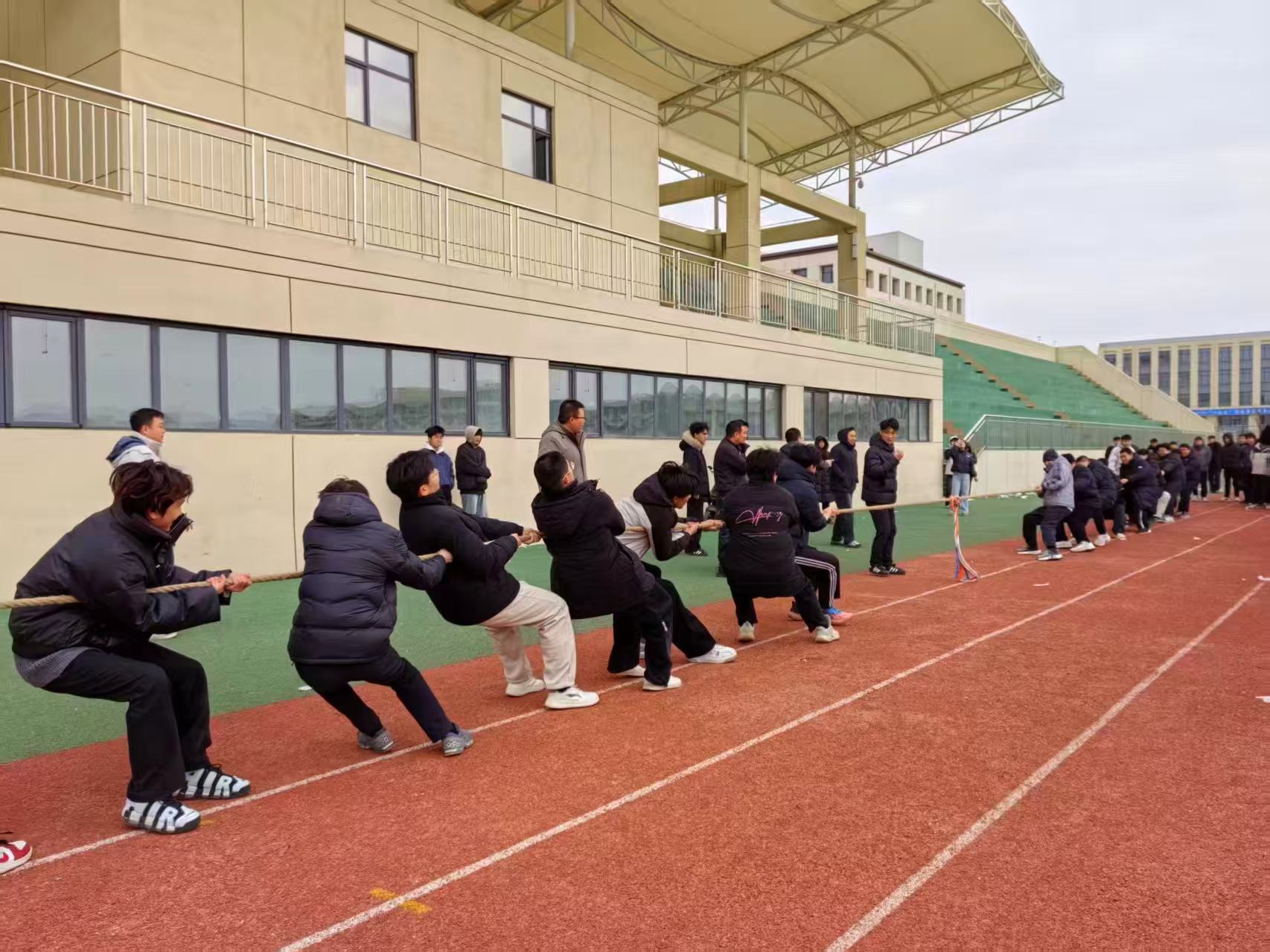 这不仅是力量的比拼,更是团队协作的考验,也是师生情谊的生动写照。队员们心往一处想、劲往一处使,用默契的配合诠释着“人心齐,泰山移”的真谛;师生们的暖心助威,让赛场多了一份温暖的支撑。拔河比赛的意义,远不止胜负本身。这份凝心聚力、奋勇争先的精神,将持续激励着我们在学习和生活中迎难而上、携手前行!