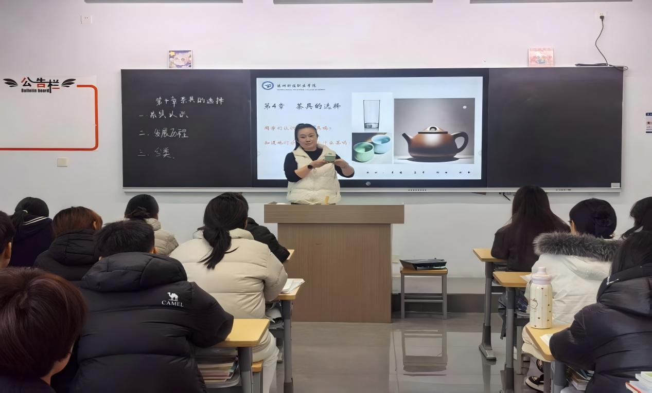 为推动中华优秀传统文化传承,将思政教育与课程教学深度融合,提升学生文化素养与道德修养,近日,德州科技职业学院航空学院在禹城校区5-605教室成功举办“茶香润心,德艺同行——以茶为媒悟思政”课程思政教学活动。2025级高铁2班全体学生参与,课程教师担任茶艺指导,活动由学生主持。
