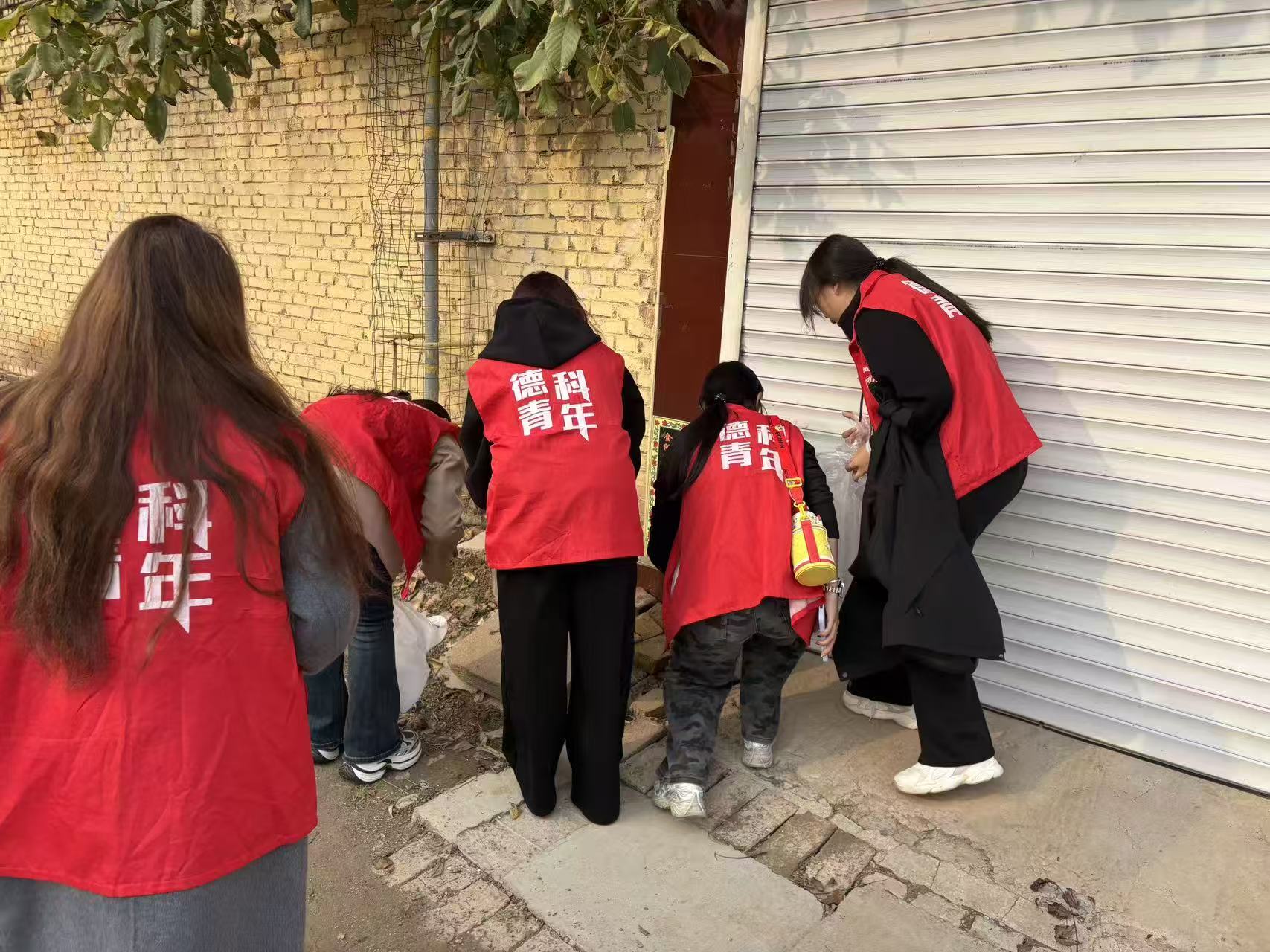 活动中,志愿者们身披醒目的“德科青年”红马甲,兵分多路开展服务:在社区街巷与林间小道,他们手持扫帚、垃圾袋,对落叶、杂物进行“拉网式”清理,不放过任何卫生死角,让老人的居住环境焕然一新;走进独居老人家中,志愿者们不仅细致地帮老人打扫室内卫生、整理生活物品,还围坐在老人身边闲话家常,耐心倾听他们的人生故事,用陪伴驱散老人的孤独感;同时,团队结合数字经济专业优势,专门开设“智能手机小课堂”,为老人讲解线上挂号、视频通话等实用技巧,助力其跨越“数字鸿沟”,更好地融入智慧生活。